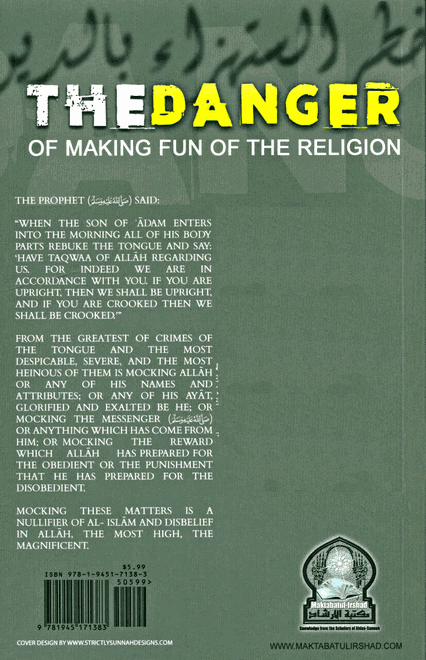 The prophet (saw) said: "when the son of 'adam enters Into the morning all of his body parts rebuke the tongue and say "have taqwaa of allah regarding us. For indeed we are in accordance with you. If you are upright,then we shall be upright, and if you are crooked then we shall be crooked." from the greatest of crimes of the tongue and the most despicable,severe,and the most heinous of them is mocking allah or any of names and his attributes; or any of his ayat, glorified and exalted be he;or mocking the messenger (saw) or anything which has come from him;or mocking the reward which allah has prepared for the obedient or the punishment that he has prepared for the disobedient. Mocking these matters nullifier of al-islam and disbelief in allah, the most high, the magnificent.