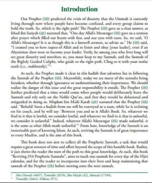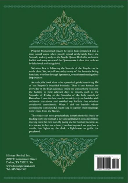 This book offers a daily Sunnah for the Hijri year, reviving 354 practices of Prophet Muhammad (PBUH) through authentic hadiths and relevant Quranic support.