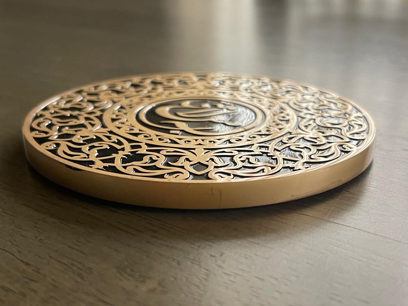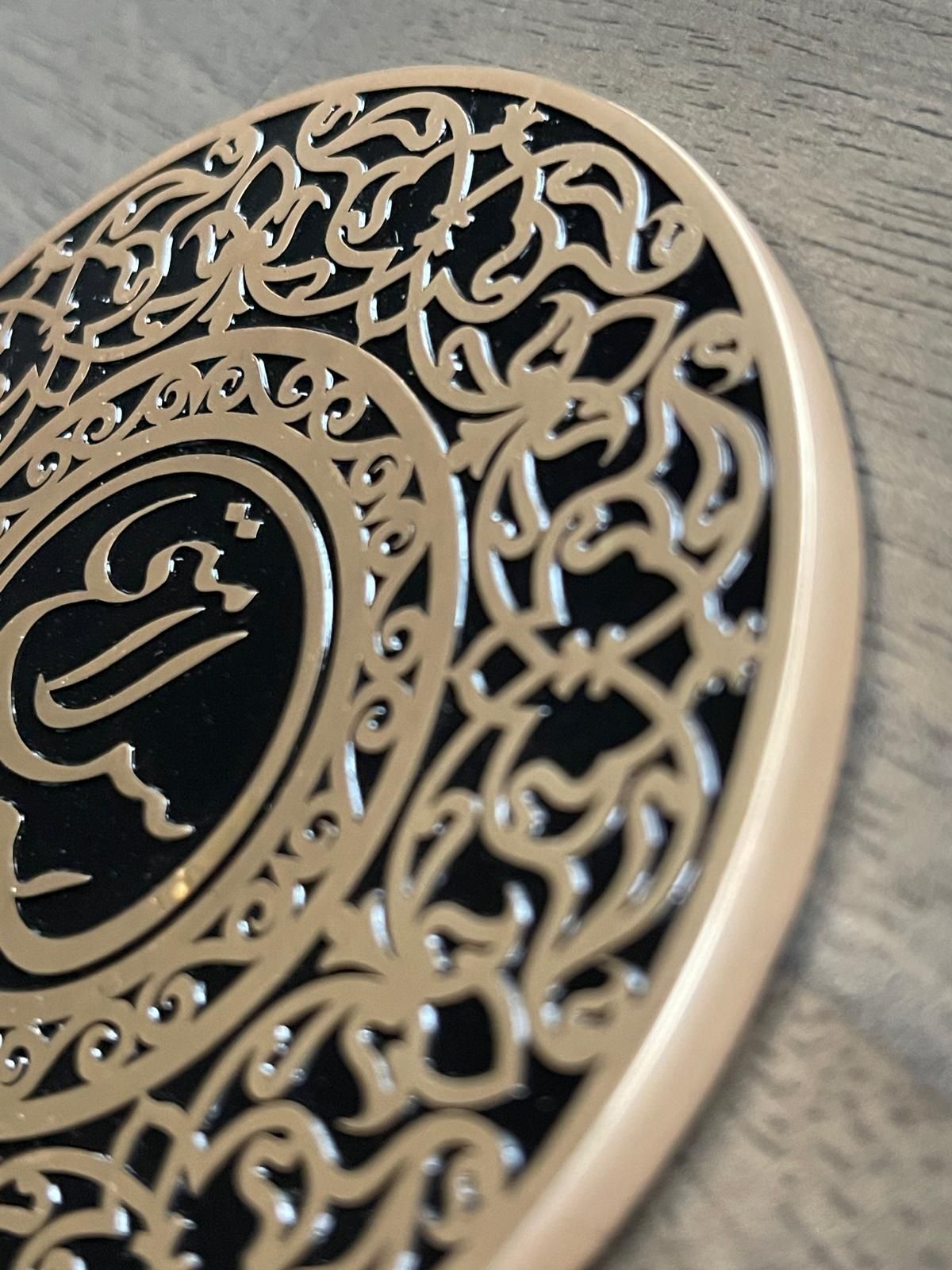 Bring timeless elegance into your home with this exquisite, limited-style Persian coaster set, featuring gold-trimmed calligraphy that reads 'Ba Salamati', a traditional Persian blessing meaning "to your health."