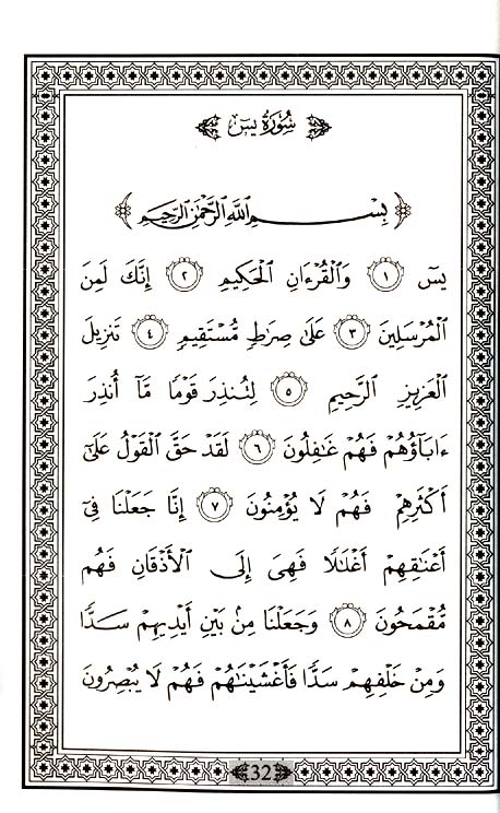 This surah is devoted to the Holy Prophet and the revelation which was revealed to him. This surah is considered to be "the heart of the Quran". This surah is regarded with special reverence, and is recited in times of adversity, illness, fasting and on the approach of death.Generally Ya Sin is said to be an abbreviation of "0 man!" Even if it is true it refers to the "perfect man", the leader of men, sent by Allah to guide man in all ages, the Holy Prophet.In the Quran, the Holy Prophet has been mentioned by the names of Muhammad, Ahmad, Abdullah, Ya Sin, Nur, Ta Ha, Muzzamil and Muddaththir. The Holy Ahl ul Bayt are referred to as ali Ya Sin, the children of "Ya Sin" (the Holy Prophet).