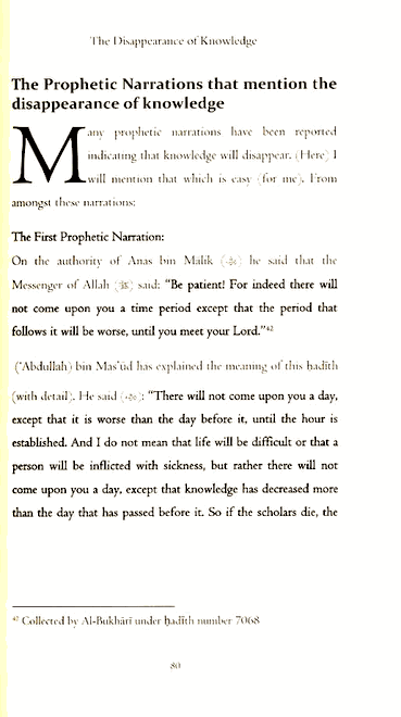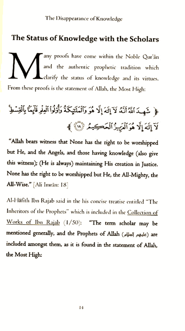 This book is an amazing work by the Noble Scholar Muhammad Al-Imaam, which discusses in detail the merits of knowledge and its people. It goes into extensive detail about the many reasons that knowledge will vanish and disappear toward the end of time.