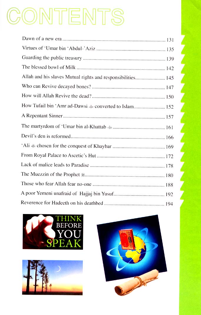 This book, Golden Words, recounts the interesting and instructive events of the lives of Allah's Messenger (S), the Rightly-Guided Caliphs, pious ancestors, famous kings and other luminaries of Islam in a an attractive way, and in simple, easy flowing language. Most of the events have been taken from reliable sources. We have rejected unreliable accounts.The clear understanding of our ancestors, their thorough and firm knowledge, their intelligence, proper comprehension, modesty, sacrifices and their endeavors to elevate the truth are best represented by these events, making it a valuable guide-book for every Muslim man and woman.This book was originally written in Urdu by Abdul Malik Mujahid and has just been translated. 3 other books from the same series are still under development: Golden Pages, Golden Rays and Golden Judgments.
