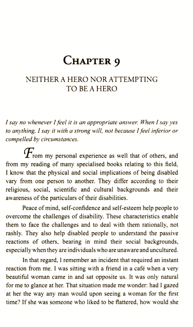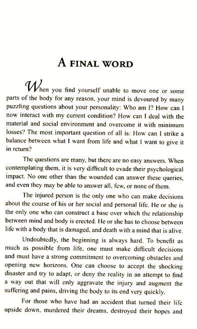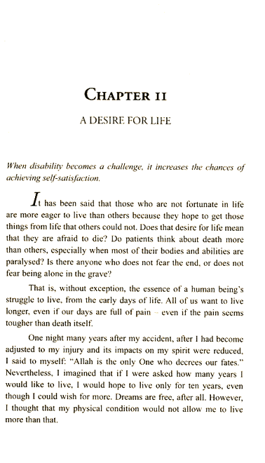 The following is translated from a review of "A Taste of Patience": The writer is a survivor of an accident that altered his life. He is a man who managed to overcome adversity and transform bitterness into personal success, as his literary gains outweighed his physical restrictions. Where his physical condition limited his movements, his creative writing opened up a new horizon that enabled him to freely interact with his readers. This is a real-life account of how a human being can overcome obstacles, giving effect to the epithet: 'What does not kill me makes me stronger.' The autobiography defines patience in two ways: first, as a bitter experience and then second, as the ability to tolerate and turn one’s misfortune into investment. The accident that the writer suffered has paralysed his body, but at the same time it has unleashed his writing talents. (Yousef el-Sharoni, Egypt) Please note that the book includes a frank discussion of the impact of the author's injuries on all aspects of his marital relationship.