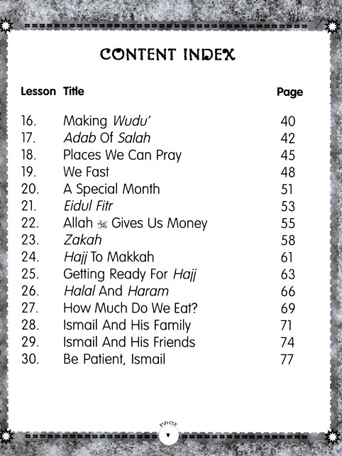This workbook has been designed to be used in conjunction with the We Are Muslims textbook. Both are a part of the Aqidah, Fiqh, and Akhlaq syllabus for Grade One pupils as a part of IQRA' International Educational Foundation's comprehensive program of Islamic Studies. This workbook provides interesting and motivating activities intended to augment the information enclosed in the textbook.